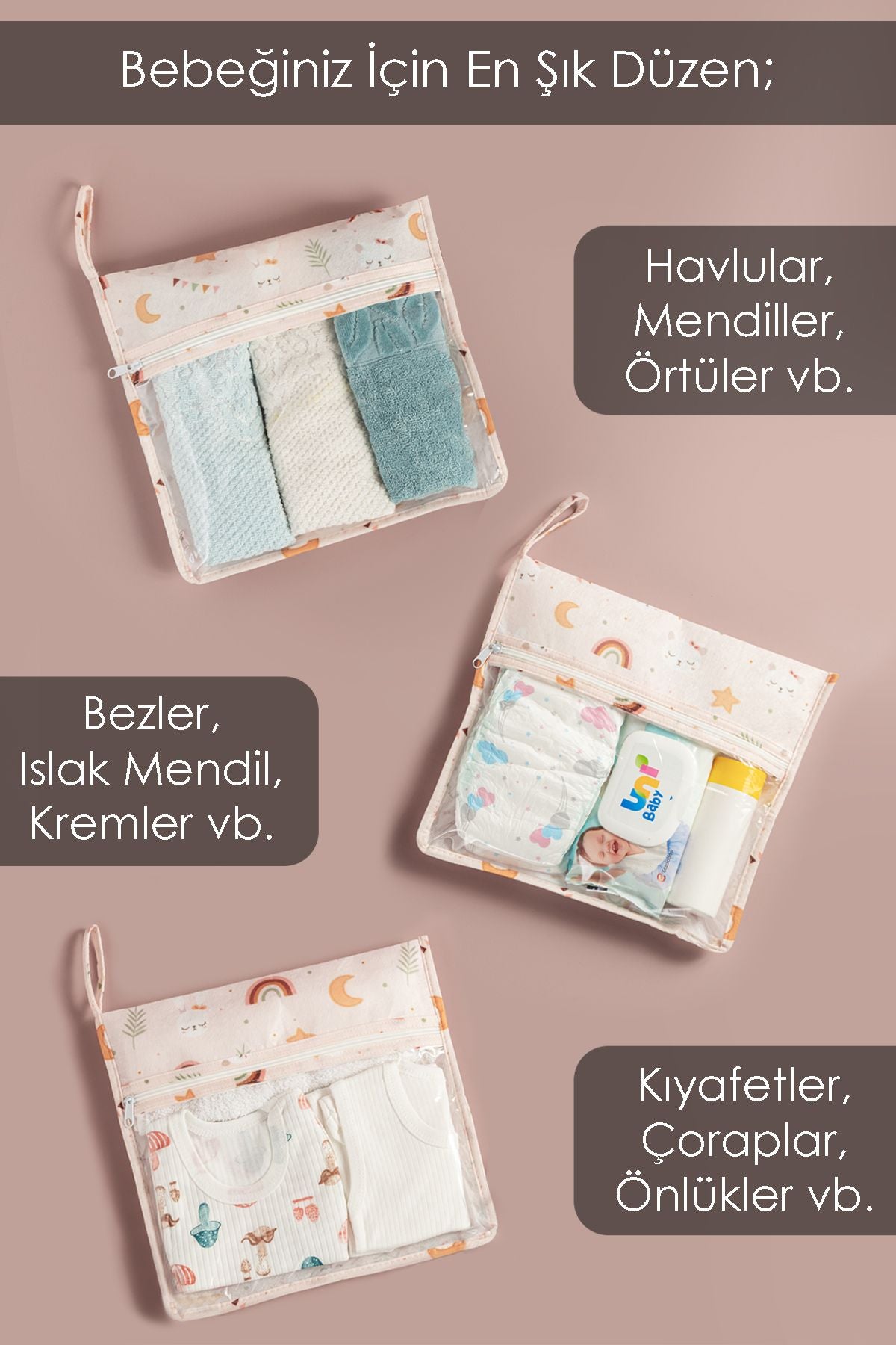 - alt değiştirme sırasında gerekli tüm malzemeleri elinizin altında bulundurmanızı sağlayan bu set, annelerin işini kolaylaştırmak için detaylı bir şekilde düşünülmüştür.