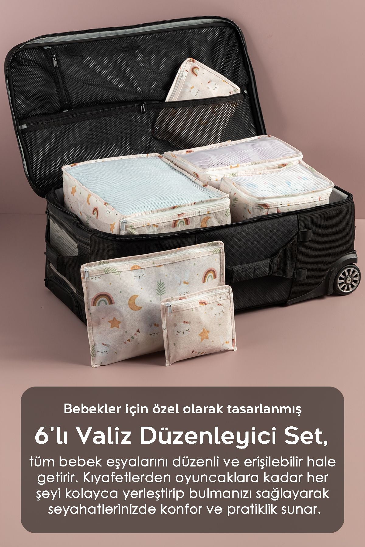 - setin içinde yer alan alt açma çantası, bebeğinizin altını rahatça değiştirebilmeniz için özenle tasarlanmıştır.