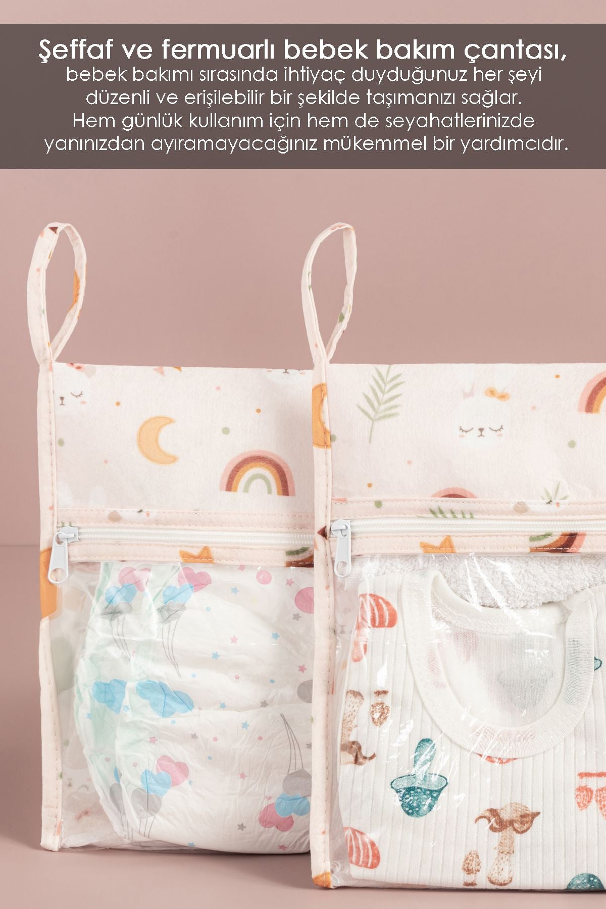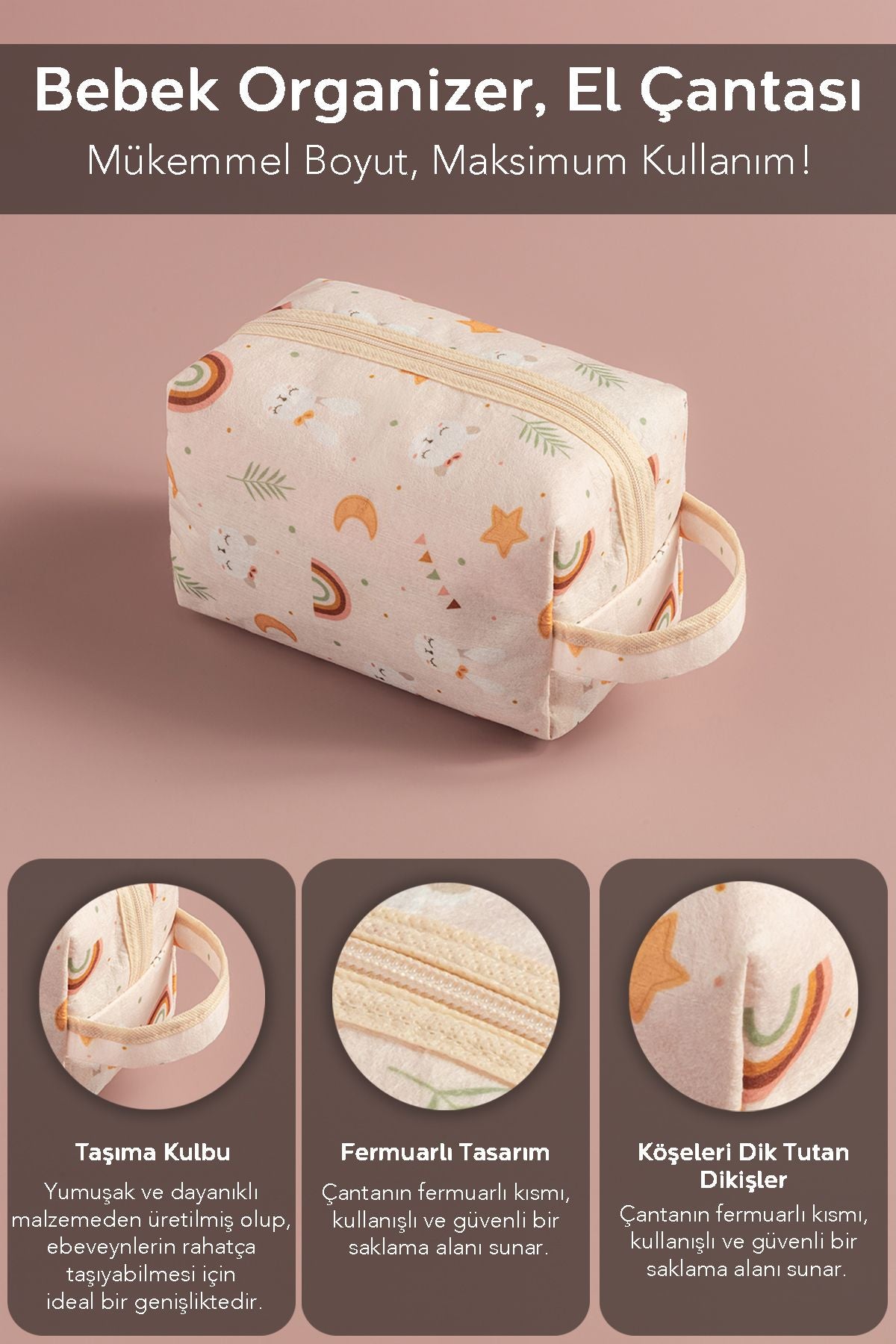- 1 adet fermuarlı bebek organizer el çantası 22 x 14 x 14 cm / 8,66 x 5,51 x 5,51 in