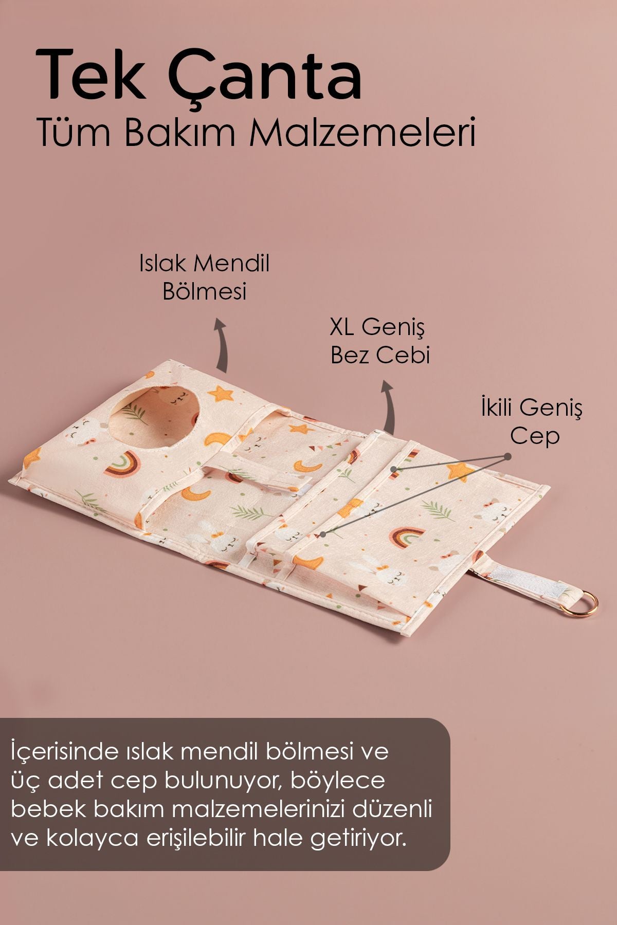 - anneler, bu çantayla birlikte bebeklerinin bakımını zahmetsizce yapabilir ve tüm ihtiyaçlarını bir arada tutabilir.