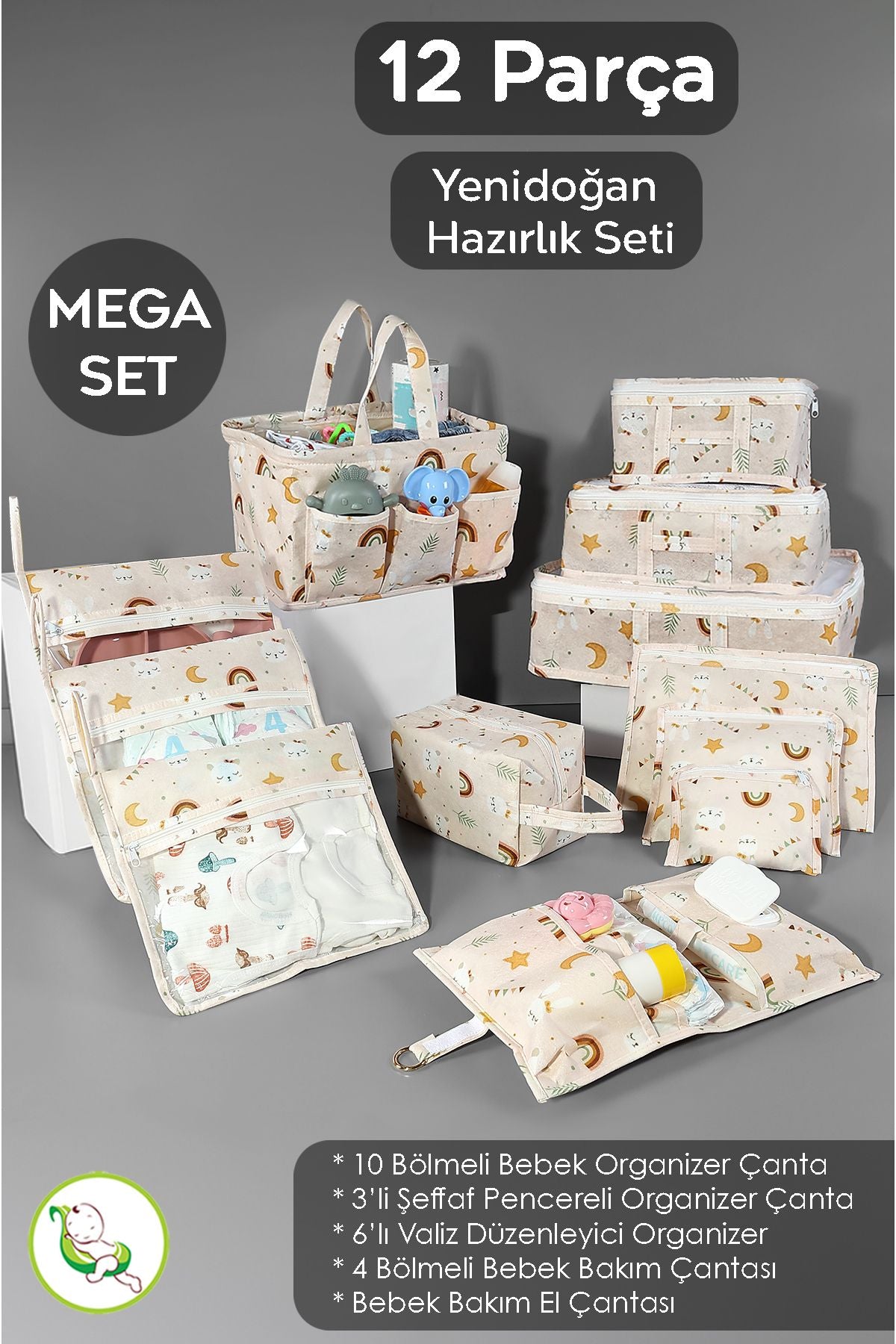12'li Yenidoğan Hastane Çıkış Seti - Anne Bebek Bakım Alt Açma Çantası - Valiz Düzenleyici Organizer