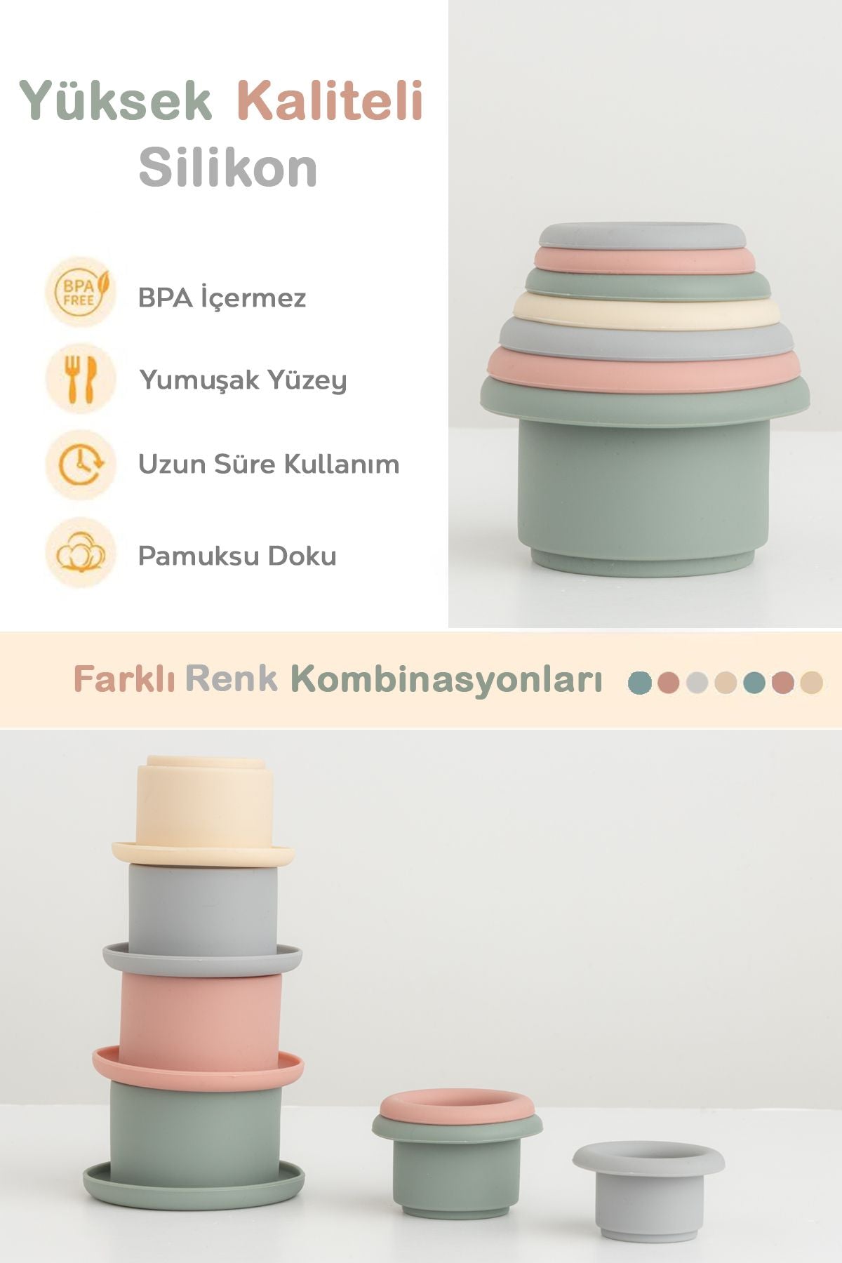 13 Parça Silikon Eğitici Oyuncak Seti - Küp Oyuncak Oyun Kulesi Bebek Çocuk Aktivite Oyuncağı Renkli